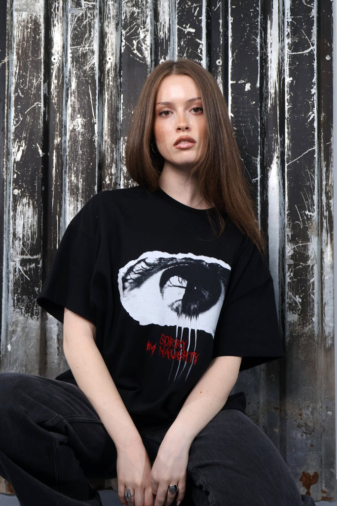 "Sorry Im Naughty" Black T-Shirt Oversize