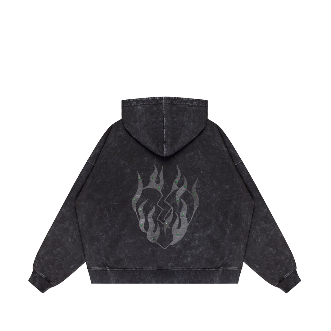 “Fire Hearts” Black Washed Hoodie
